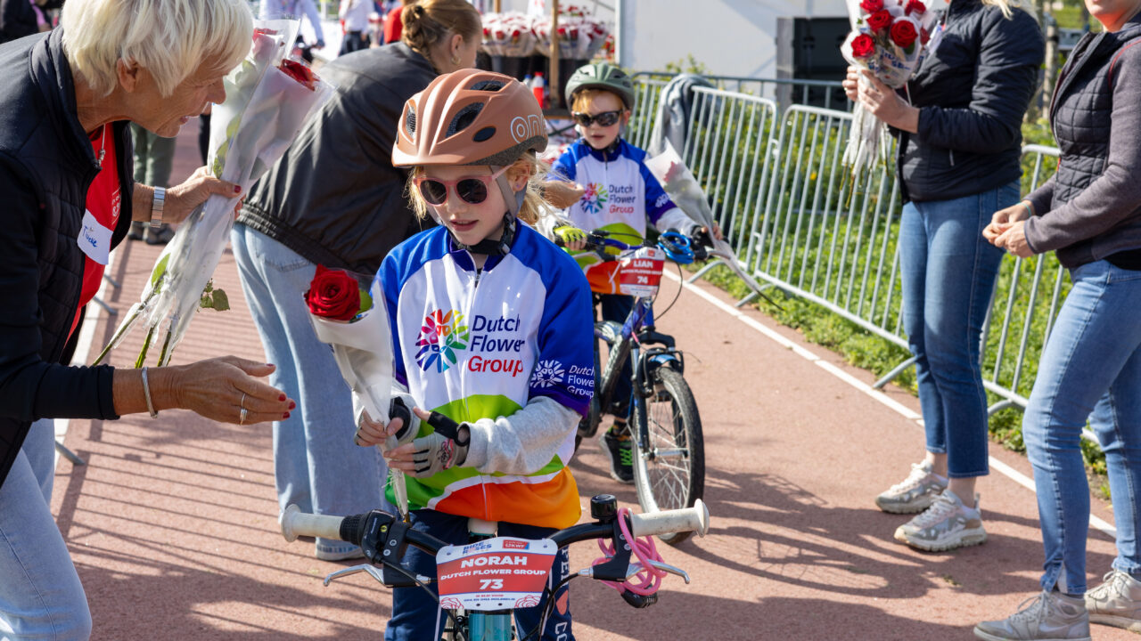 Our sincere thanks to Marjoland for sponsoring the beautiful red roses, Paardekooper B.V. for the sleeves for the finish-line roses, Ruigrok for sleeving them, Geostick B.V., Vip Roses, and Dümmen Orange for providing their locations along the route, Dutch Flower Foundation for the extra donation to KWF, Koeltransport Aalsmeer B.V. for transporting the bikes from the Westland, I Care Productions for the organization, the DFG colleagues’ project team, and of course all the cyclists, walkers, and sponsors!