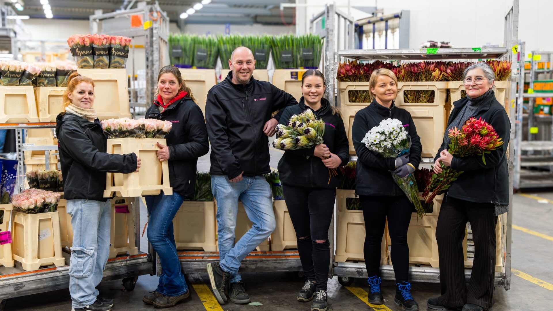 Bij OZ-Hami geloven we dat je meer bereikt door samen te werken. Door het bundelen van de kennis, ervaring en expertise van OZ Export en Hamifleurs zijn we in staat nog beter onze klanten te bedienen. Hierdoor kunnen we onze klanten het meest complete snijbloemen assortiment ter wereld aanbieden, met een geweldig aanvullend assortiment van snijgroen, planten en decoraties om elke bestelling compleet te maken. OZ-Hami is gevestigd in Aalsmeer, het hart van de wereldwijde bloemenhandel. Vanuit ons volledig geconditioneerd magazijn van meer dan 36.000m² verwerken we dagelijks miljoenen snijbloemen voor onze importerende groothandel klanten overal ter wereld. Deze bloemen worden door onze product specialisten rechtstreeks ingekocht bij kwekers overal ter wereld en op alle grote bloemenveilingen in Aalsmeer, Naaldwijk (Westland) en Rijnsburg.